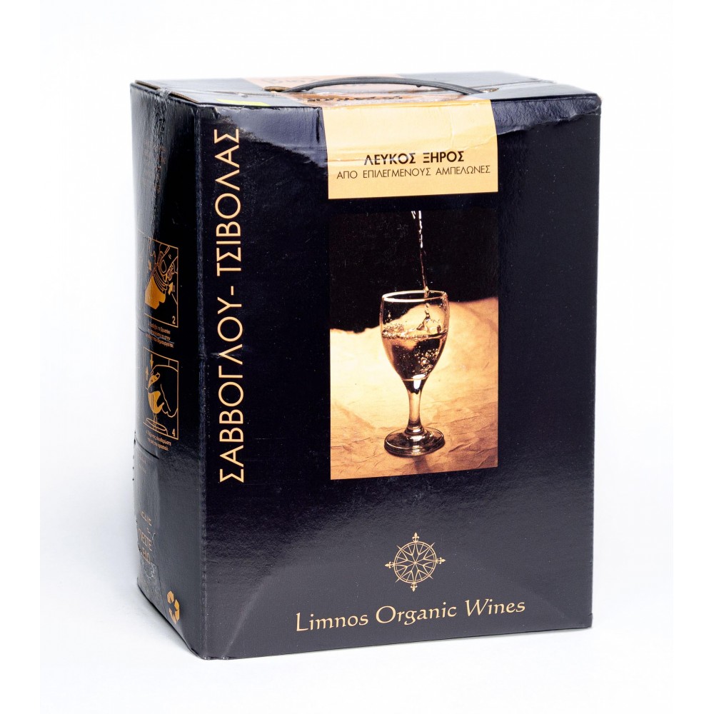 Βιολογικός Οίνος Λευκός ξηρός Λήμνου σε ασκό (Μοσχάτο Αλεξανδρείας) 5Lt
