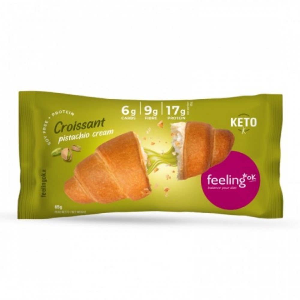Πρωτεϊνικό Κρουασάν με γέμιση κρέμα φιστίκι Κελυφωτό χωρίς ζάχαρη low carb keto friendly 65gr FeelingOK