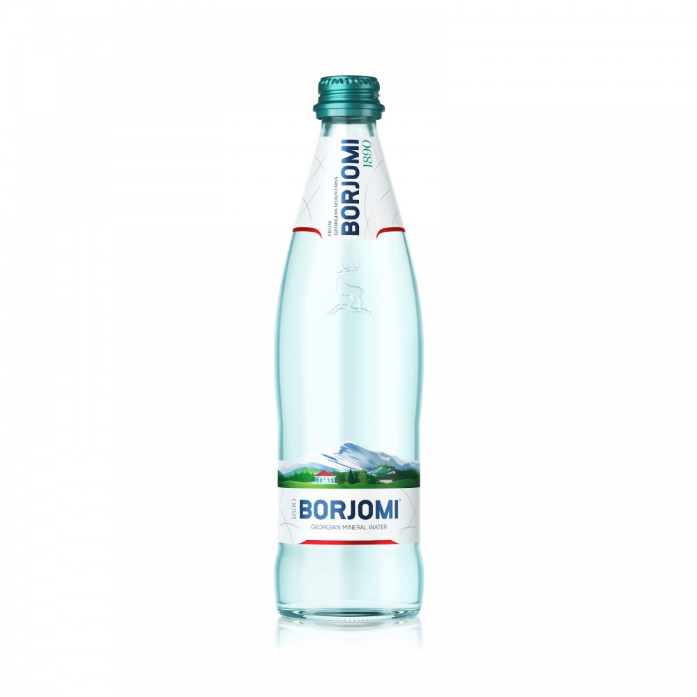 Ανθρακούχο νερό Borjomi , σε γυάλινη φυάλη.