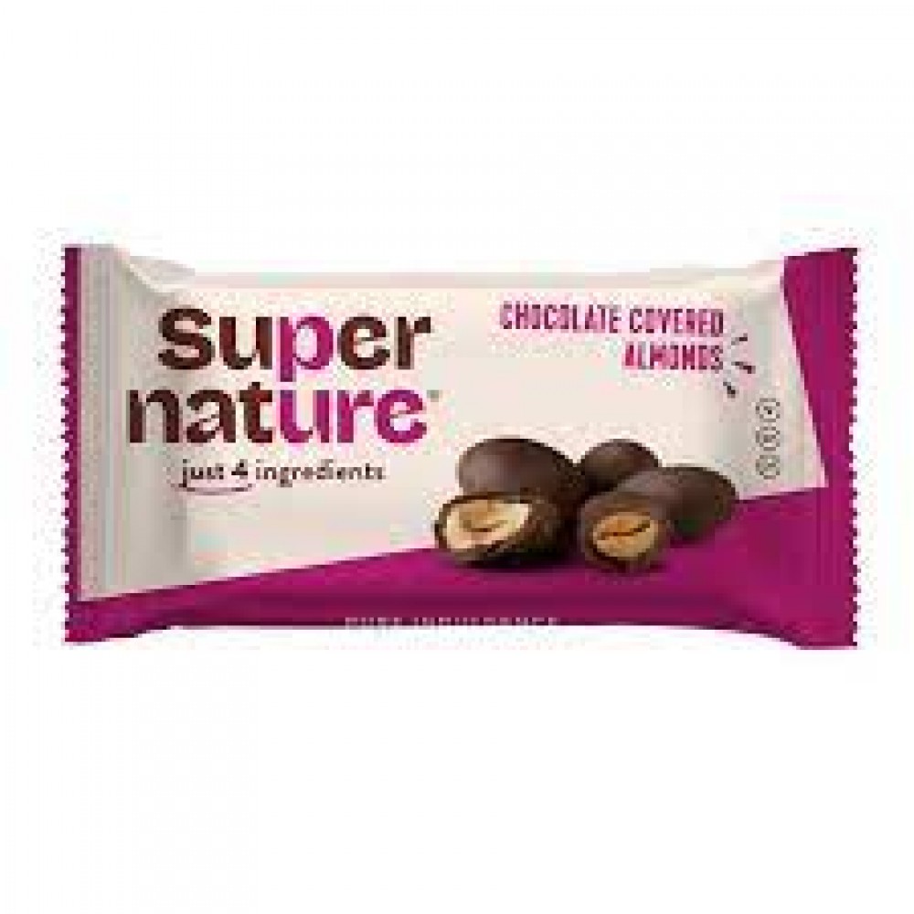 Βιολογικά Αμύγδαλα με επικάλυψη σοκολάτας Κακάο χωρίς ζάχαρη και χωρίς Γλουτένη 40gr Super Nature