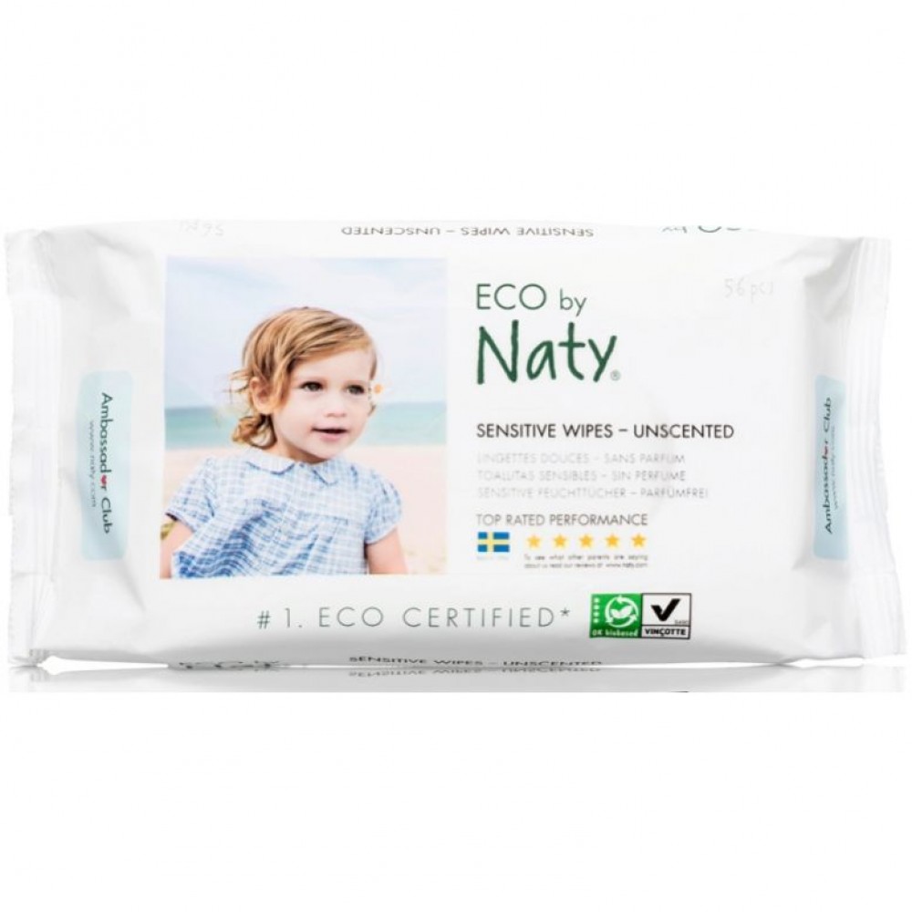 Βιολογικα μαντιλάκια Βρεφικα χωρίς άρωμα Vegan (56 τεμάχια) 350gr Eco by Naty