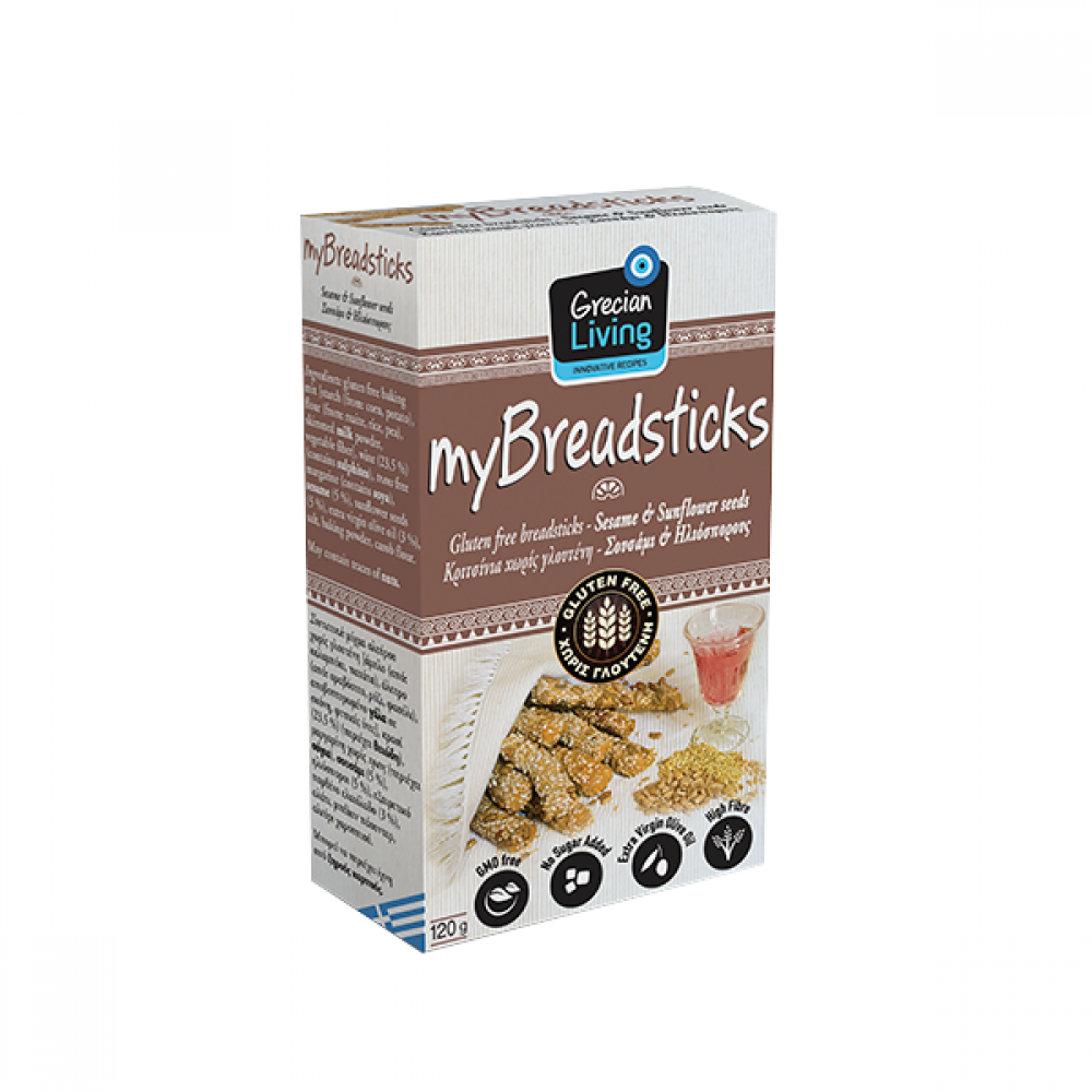 κριτσίνια Σουσάμι και Ηλιόσπορος low carb χωρίς Γλουτένη 120gr Grecian living
