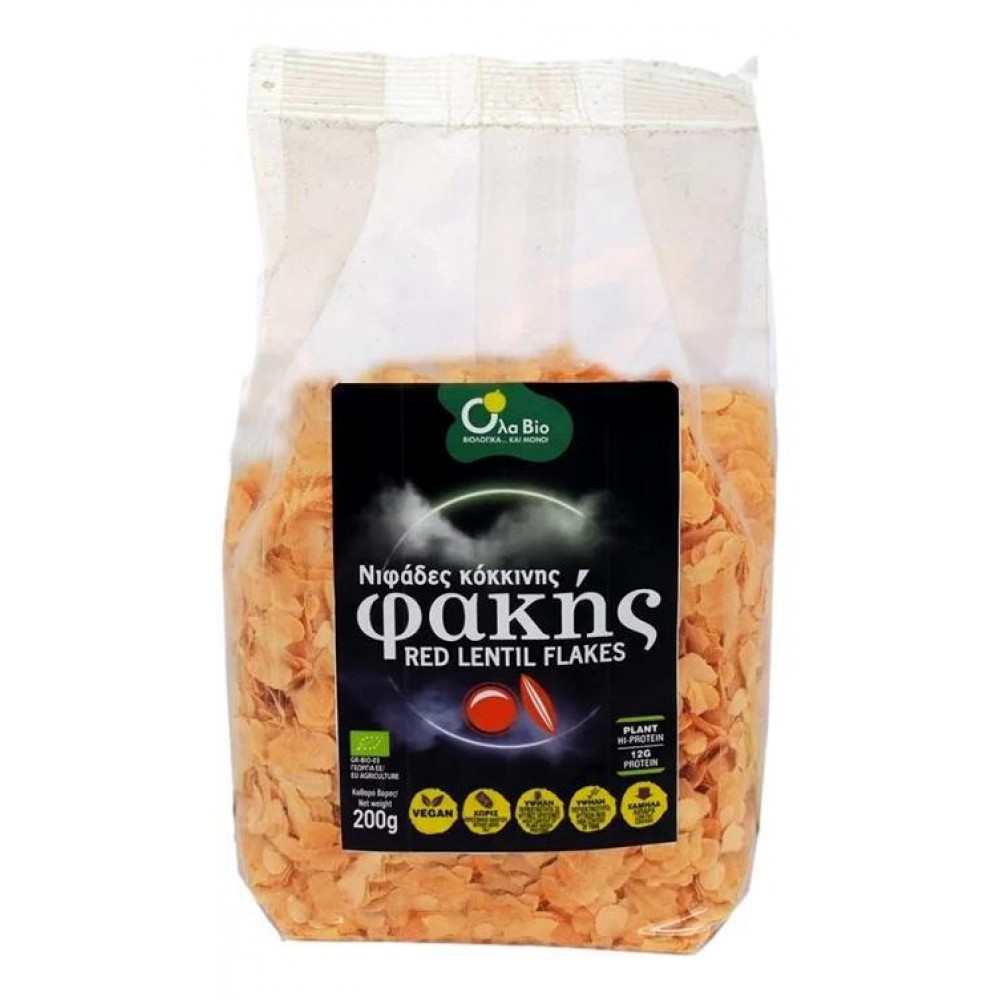 Βιολογικές Νιφάδες κόκκινης φακής χωρίς Γλουτένη και χωρίς αλάτι 200gr Ola Bio