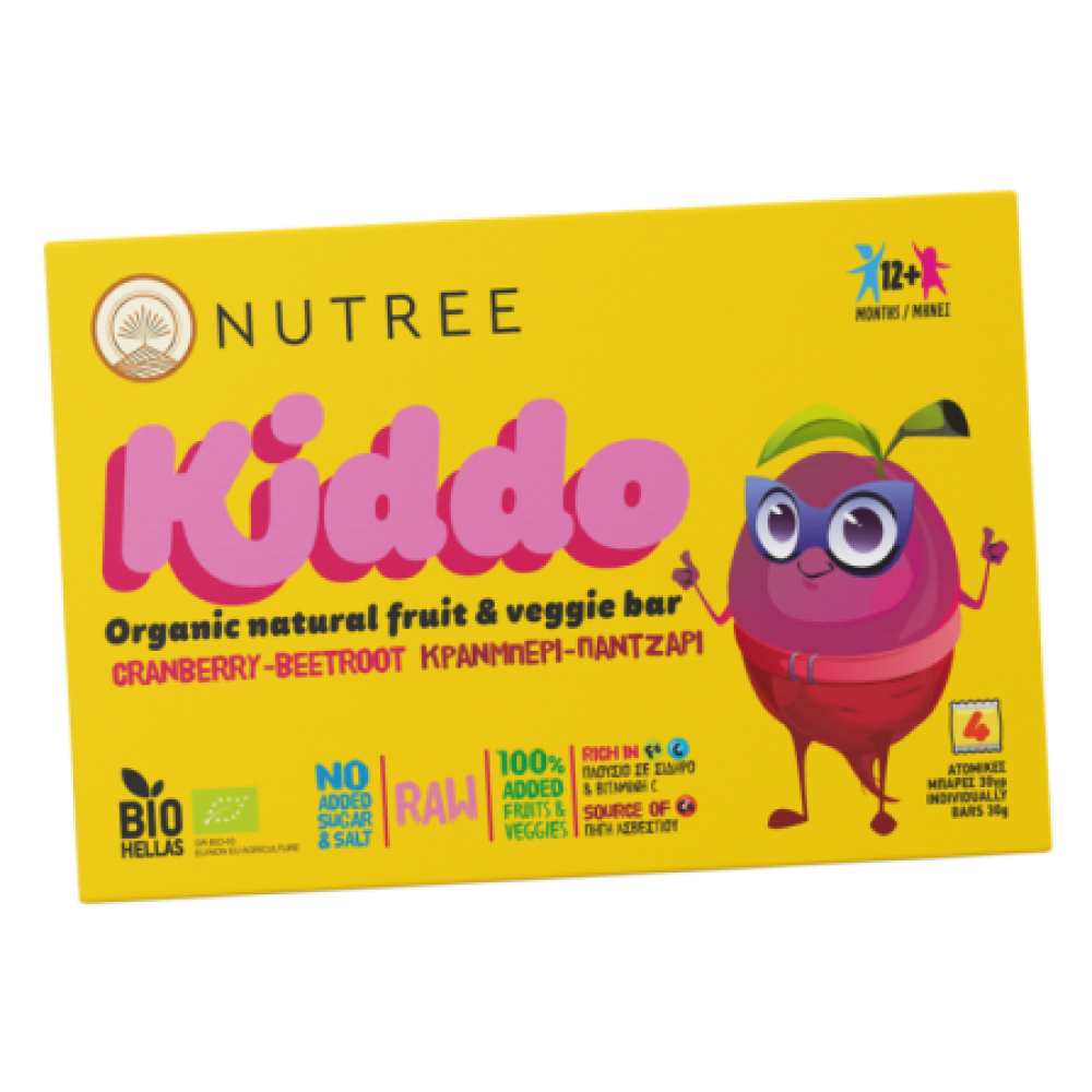 Βιολογικές παιδικές ωμές Μπάρες Κράνμπερυ Παντζάρι, χωρίς ζάχαρη, χωρίς αλάτι, χωρίς Γλουτένη και αλλεργιογόνα από 12 μηνών Kiddo NUTREE (συσκευασία με 4 ατομικές Μπάρες) 120gr