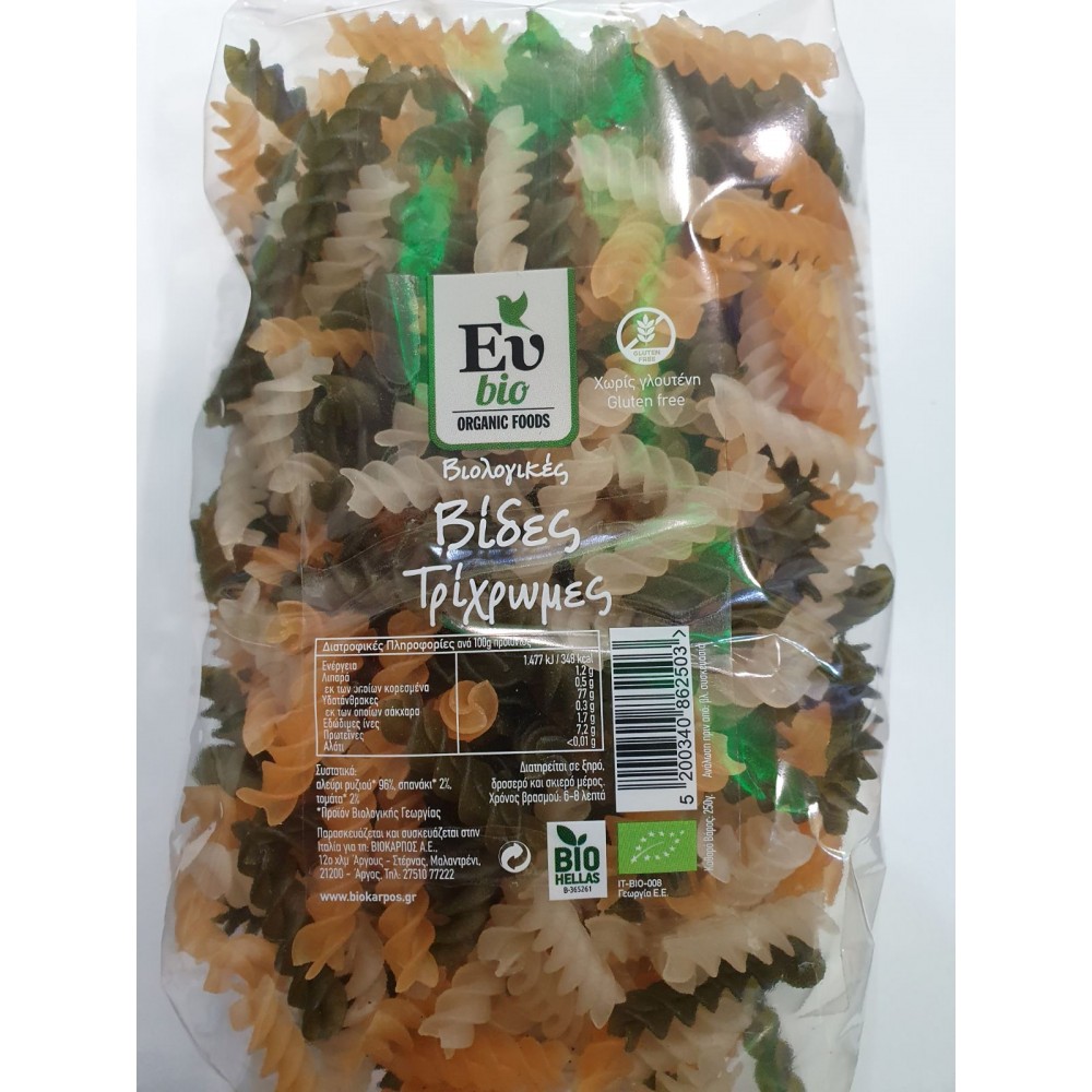 Βιολογικές τρίχρωμες βίδες χωρίς γλουτένη 250gr Eubio