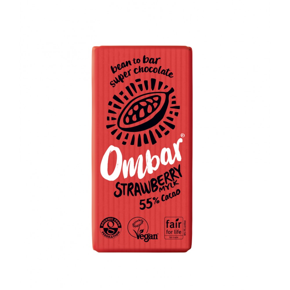 ακατέργαστη σοκολάτα Φράουλα με 55% Κακάο και ζάχαρη Καρύδας 35gr Ombar