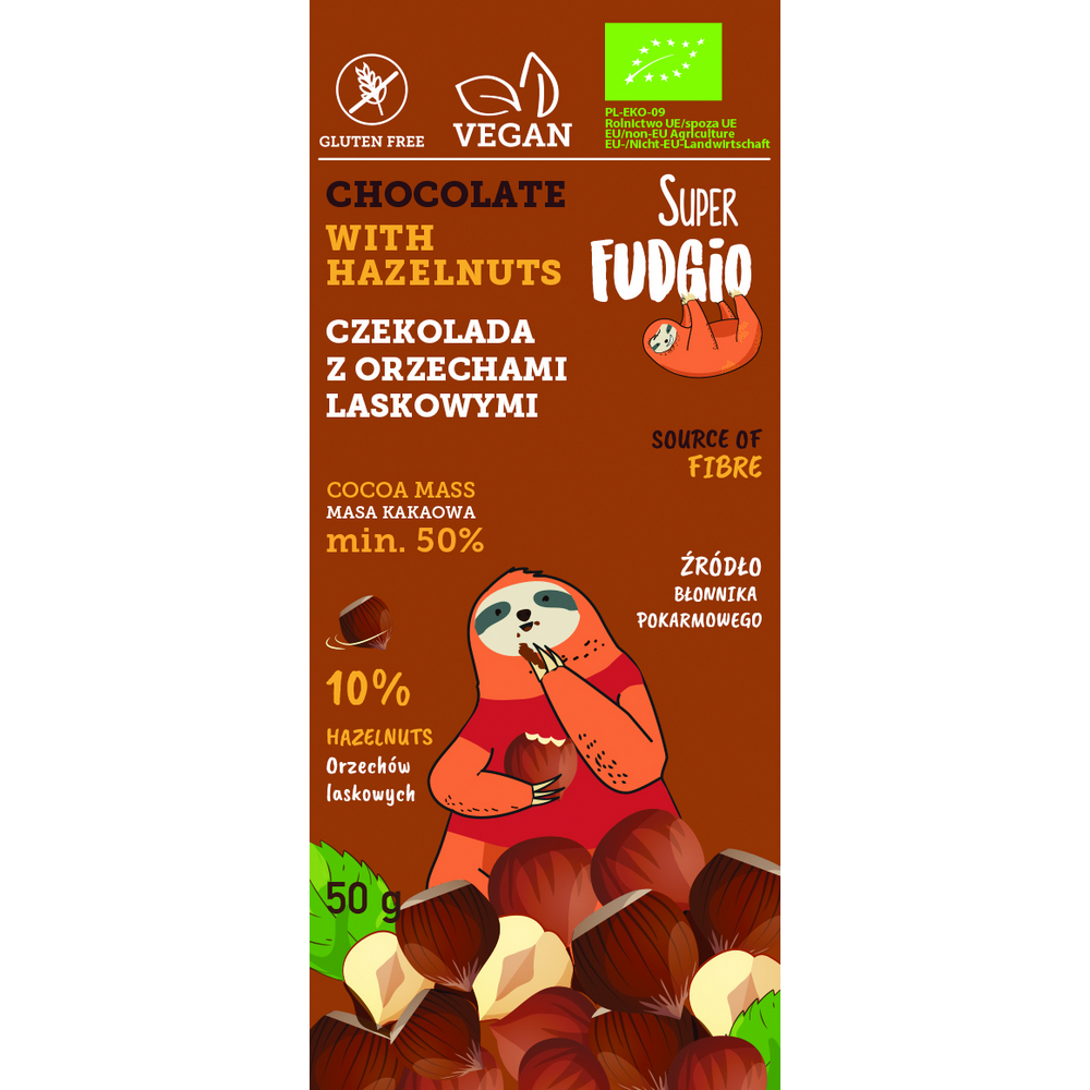 Βιολογική σοκολάτα με Φουντούκια χωρίς Γλουτενη Vegan 50gr Fudgio