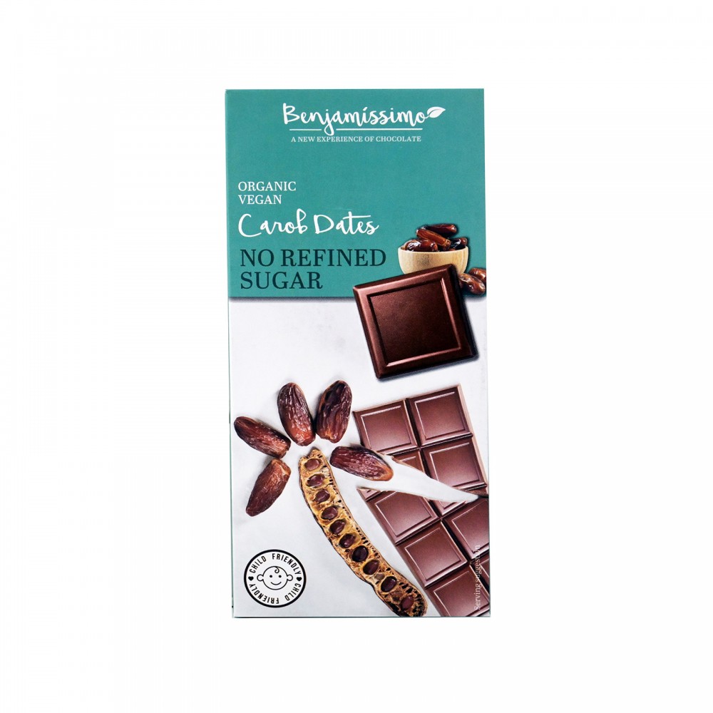 Βιολογική σοκολάτα με χαρουπι και Χουρμάδες χωρίς ζάχαρη και χωρίς Γλουτενη 70gr Benjamissimo