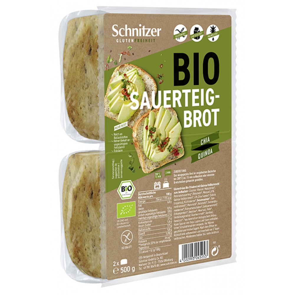 Βιολογικό ψωμί από Κινόα και Chia χωρίς ζάχαρη & χωρίς Γλουτένη 500gr Schnitzer