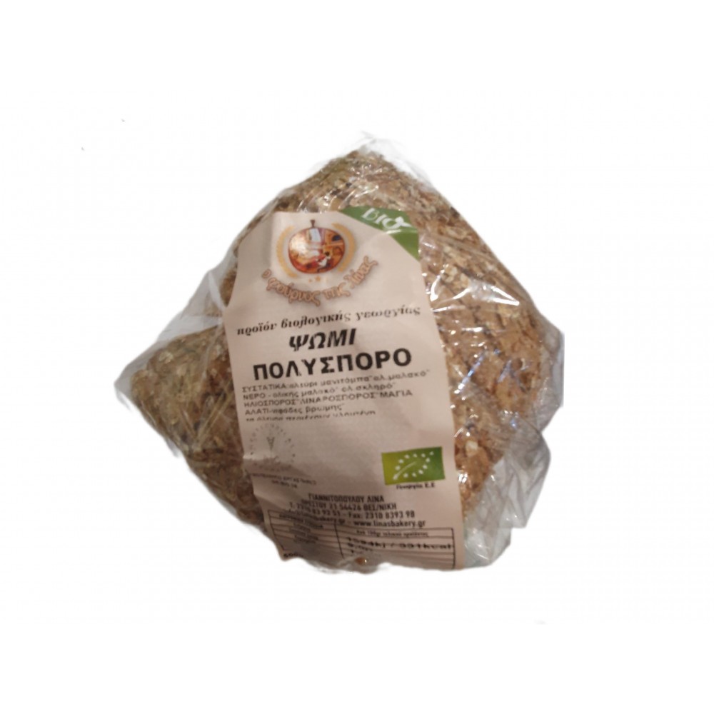 Βιολογικό Ψωμί Πολύσπορο με ηλιόσπορο λιναρόσπορο και νιφάδες βρώμης 500gr "Ο Φούρνος της Λίνας"