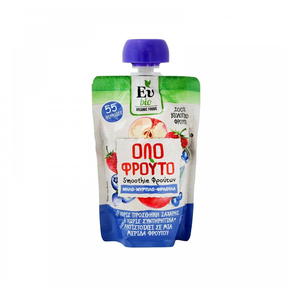 Βιολογικό Smoothie πουρές Μήλο Μυρτιλλο Φράουλα χωρίς ζάχαρη 100gr Eubio