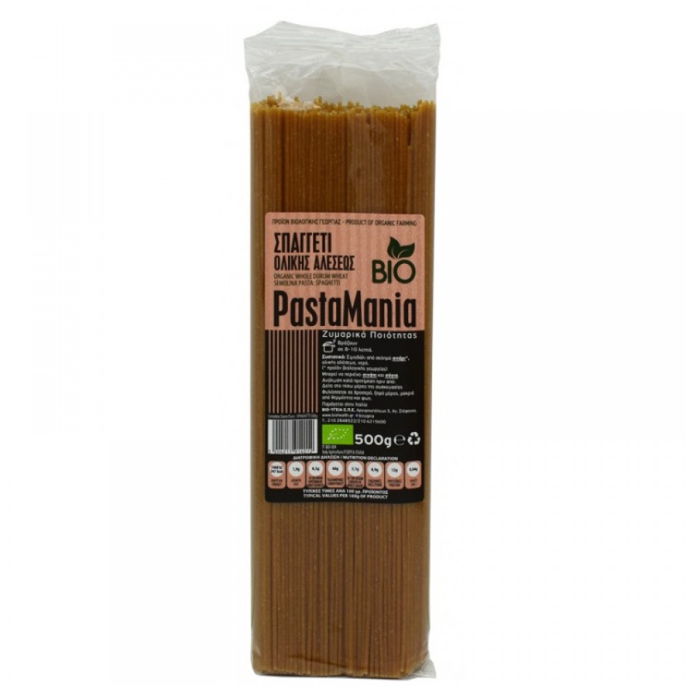 Βιολογικό σπαγγέτι ολικής 500gr PastaMania