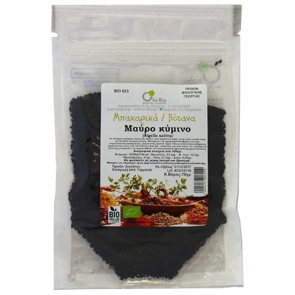 Βιολογικοί Σπόροι μαύρο Κύμινο Nigella Sativa 70gr Ola bio