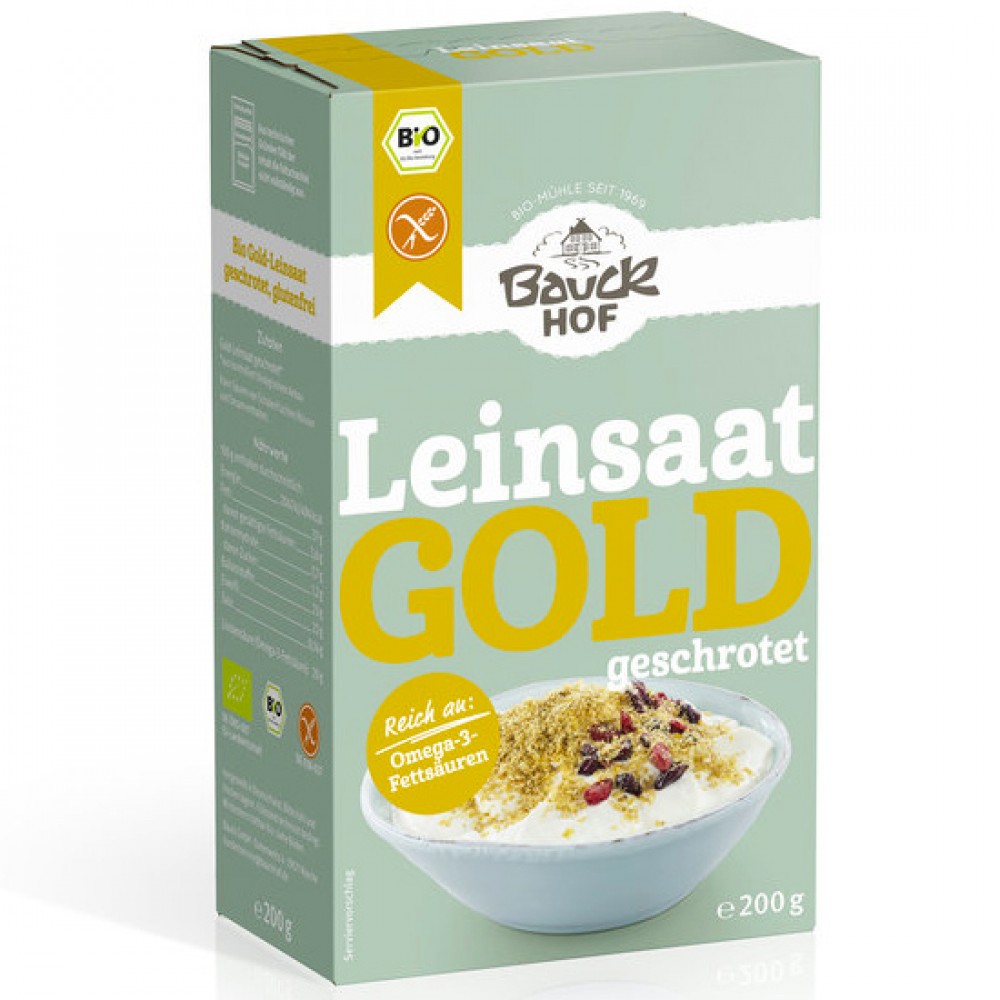 Βιολογικός Λιναρόσπορος χρυσός κοπανιστός πλούσιος σε Ω3 χωρίς Γλουτένη 200gr BAUCK