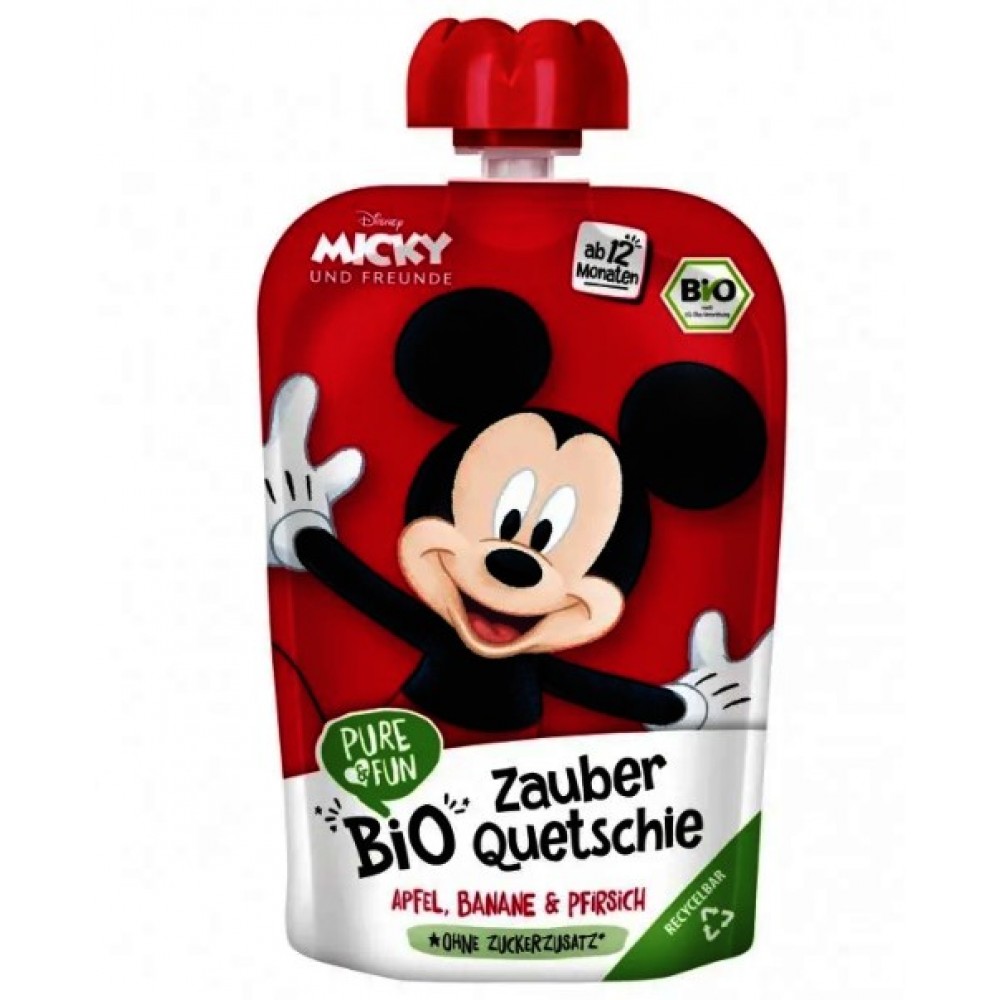 Βιολογικός πουρές φρούτων παιδικός (Μήλο-μπανάνα-ροδάκινο) από 12 μηνών 100gr Disney Micky