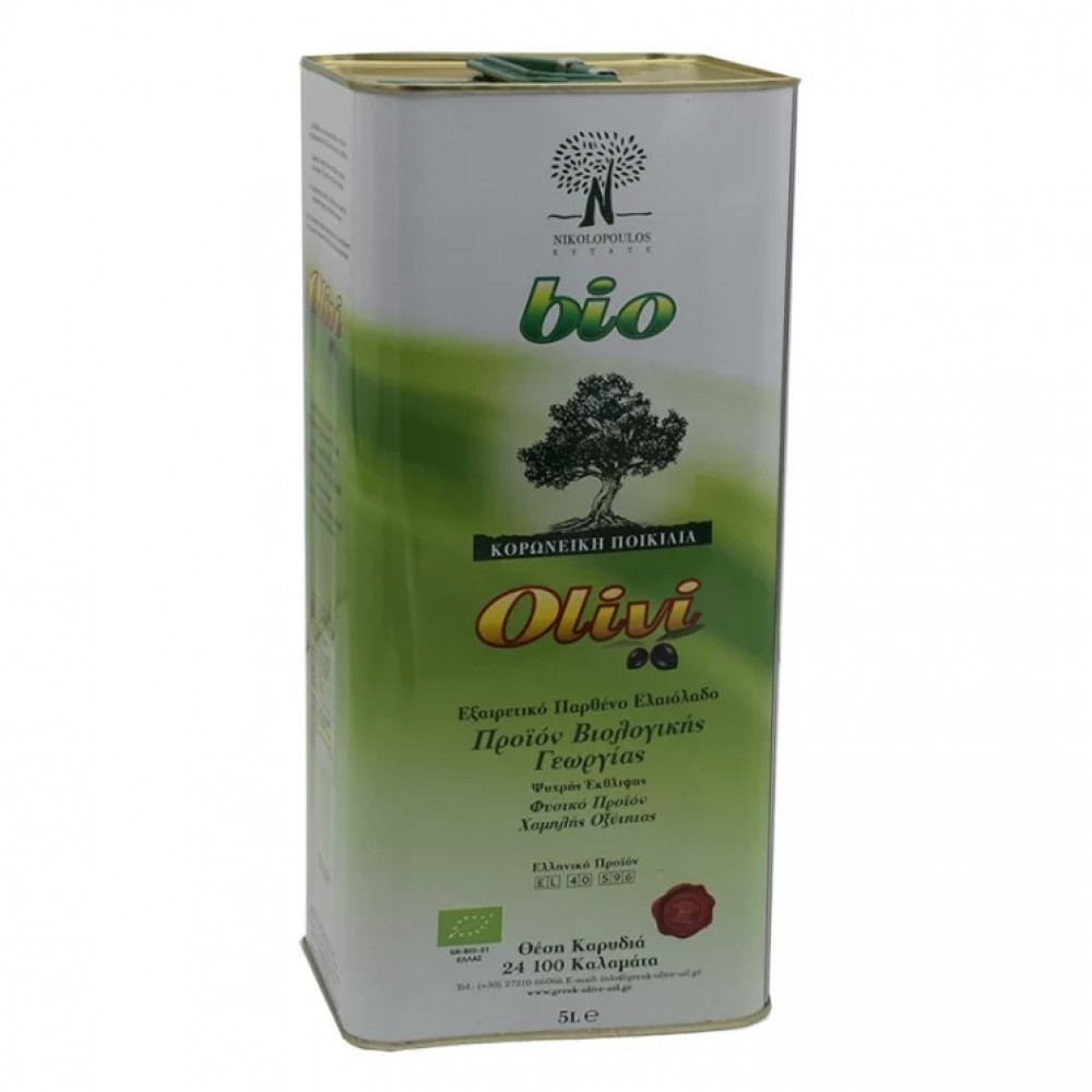 Βιολογικό εξαιρετικό παρθένο ελαιόλαδο Κορωνέικη ποικιλία άθερμο Καλαμάτας 5L Κτήμα Νικολοπουλου
