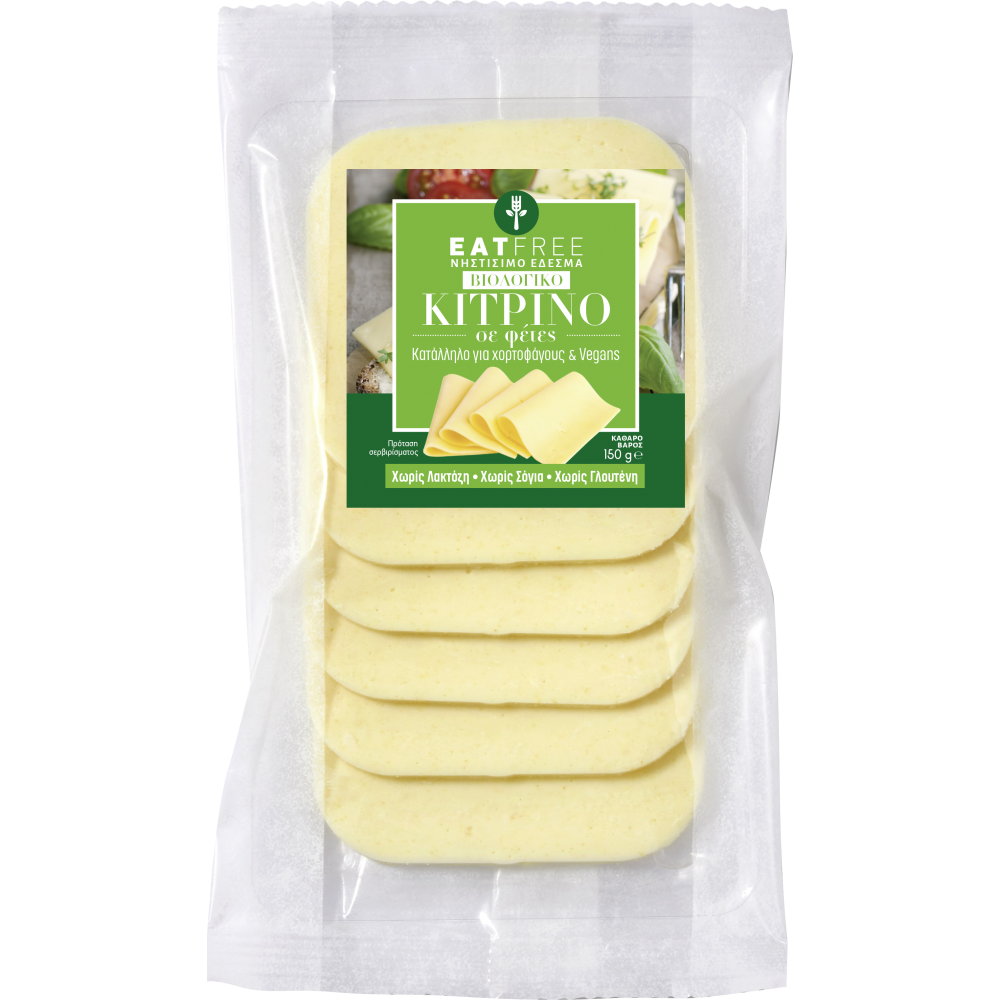 Βιολογικό φυτικό τυρί κίτρινο σε φέτες Vegan χωρίς Γλουτένη χωρίς Λακτόζη χωρίς σόγια νηστίσιμο 150gr Eat free