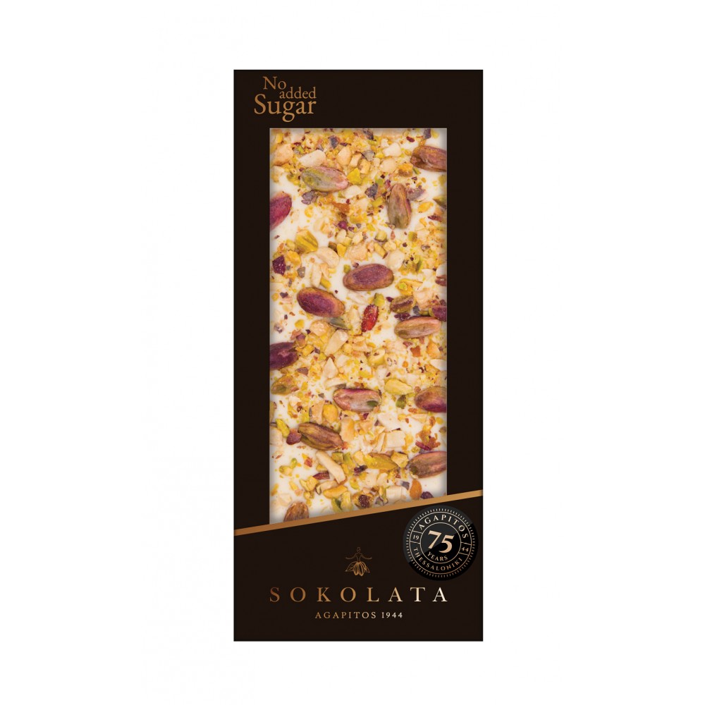 Λευκή Σοκολάτα με φυστίκια Αιγίνης χωρίς ζάχαρη "Αγαπητός" 100gr