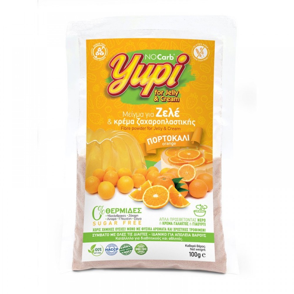 Μειγμα για ζελέ και κρέμα Ζαχαροπλαστικης πορτοκάλι χωρίς υδατάνθρακες, χωρίς ζάχαρη και χωρίς γλουτενη No carb 100gr Yupi