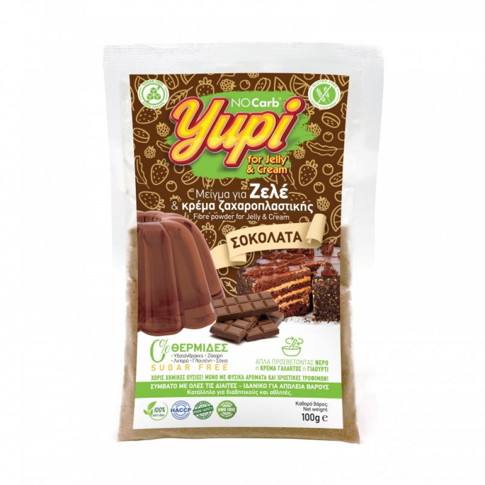 Μείγμα για ζελέ και κρέμα Ζαχαροπλαστικής Σοκολάτα χωρίς υδατάνθρακες, χωρίς ζάχαρη και χωρίς Γλουτένη No Carb 100gr Yupi