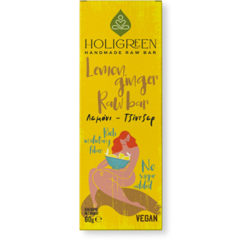 Μπάρα ενέργειας λεμόνι Τζίντζερ lemon ginger ωμή RAW χωρίς ζάχαρη & χωρίς Γλουτένη Vegan 60gr HOLIGREEN