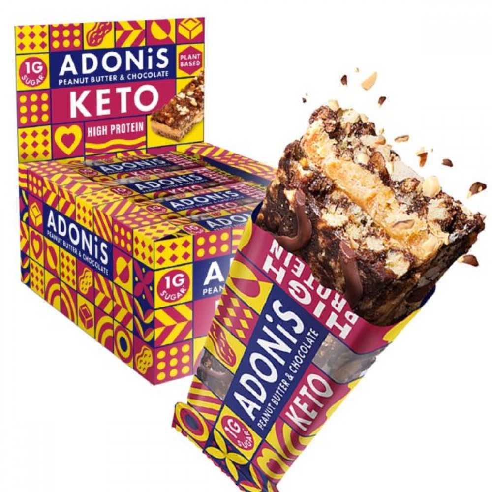Μπάρα βιταμινούχα υψηλής πρωτεΐνης με φυστικοβούτυρο & Κακάο Peanut butter & Cocoa Low Carb ΚΕΤΟ High protein 45gr ADONIS