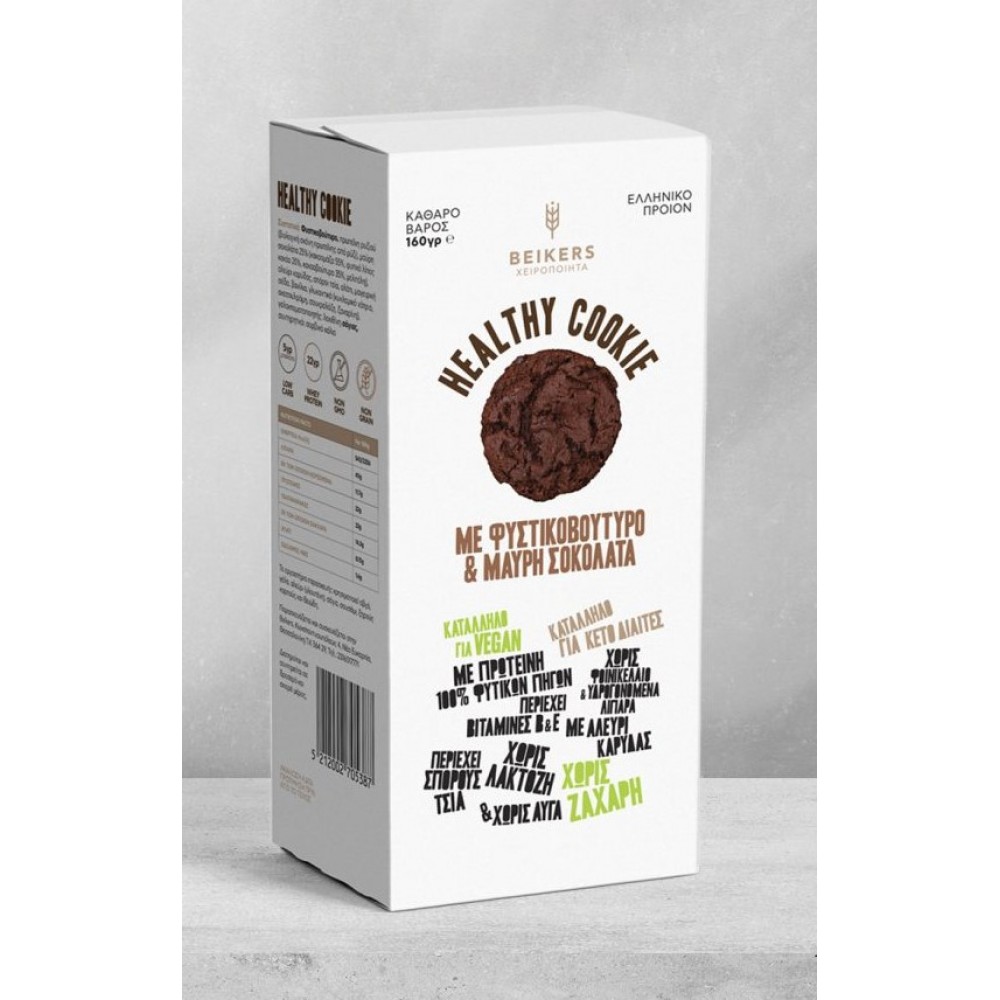 Μπισκότα πρωτεϊνης KETO με αλεύρι καρύδας , φυστικοβούτυρο, μαύρη σοκολάτα & σπόρους Chia "Beikers" 160gr