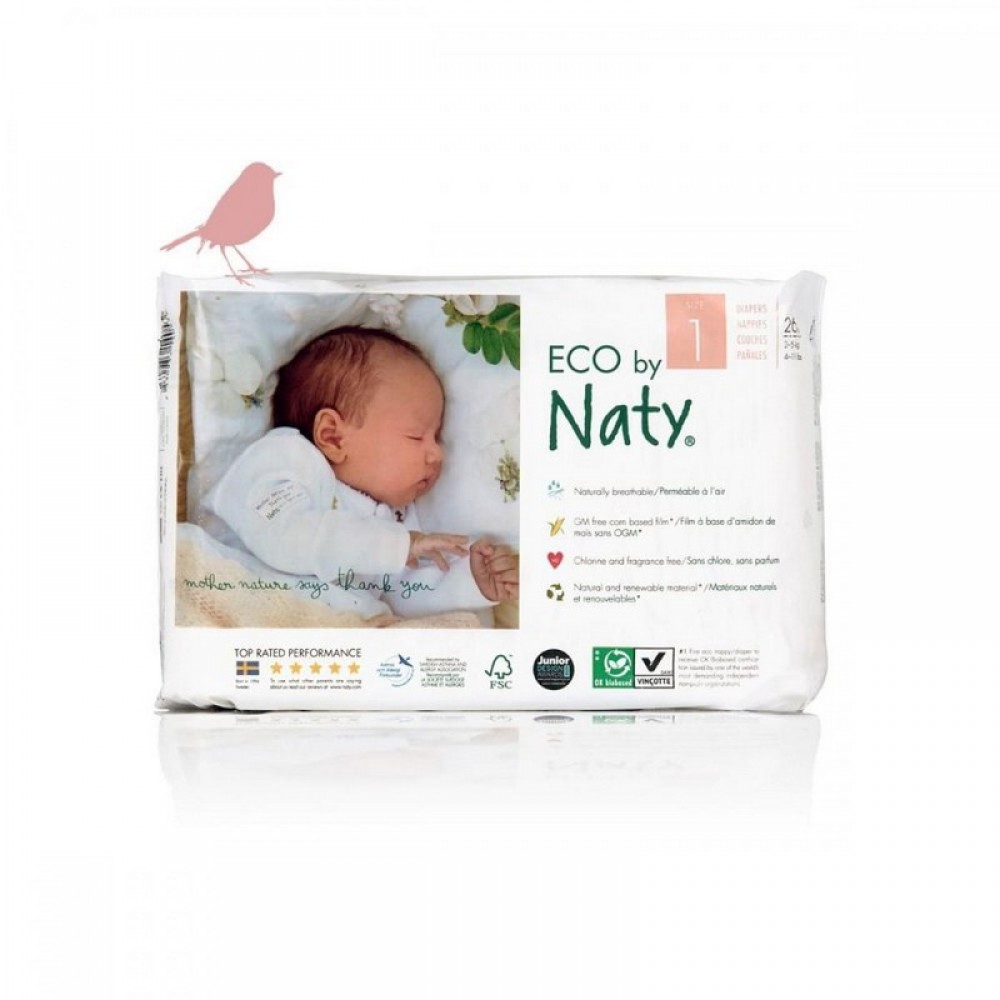 Οικολογικές πάνες για νεογέννητο 2-5kg (25 τεμάχια) χωρίς χλώριο και αρώματα Eco by Naty