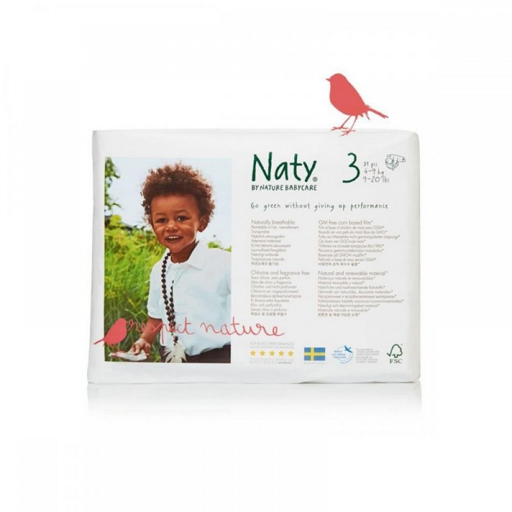 Οικολογικές πάνες Medium 4-9kg (30 τεμάχια) χωρίς χλώριο και αρώματα 850gr Eco by Naty