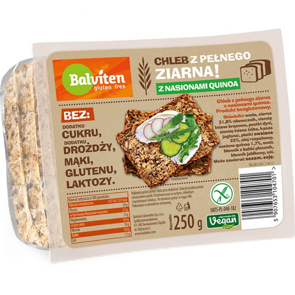 Ψωμί Πολύσπορο φέτες με Κινόα χωρίς γλουτένη, χωρίς λακτόζη και χωρίς ζάχαρη vegan 250g Balviten