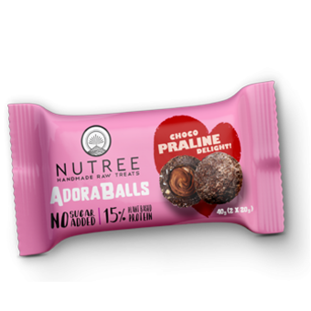 Πρωτεϊνικές μπαλίτσες AdoraΒalls σοκολάτα πραλίνα, χωρίς ζάχαρη 40gr Nutree