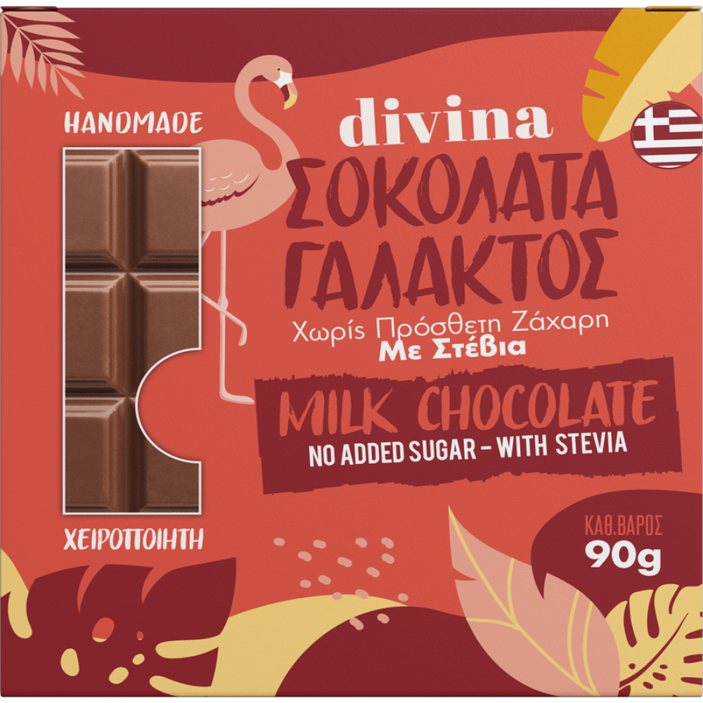 Σοκολάτα γάλακτος χωρίς ζάχαρη 90gr Divina