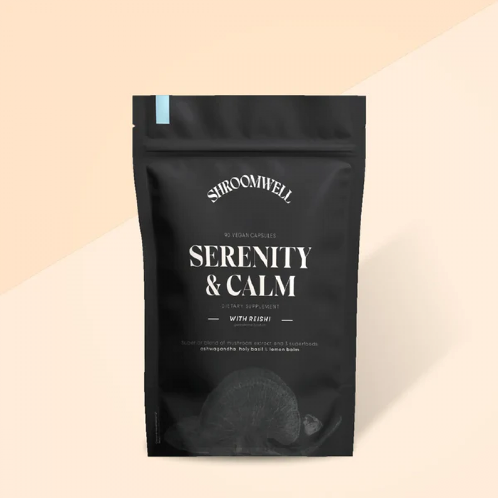 Συμπλήρωμα διατροφής SERENITY & CALM για ξεκούραση και ηρεμία του οργανισμού με εκχύλισμα μανιταριού REISHI και εκχυλίσματα super foods Ashwagandha, holy basil & lemon balm 90 vegan caps SHROOMWELL