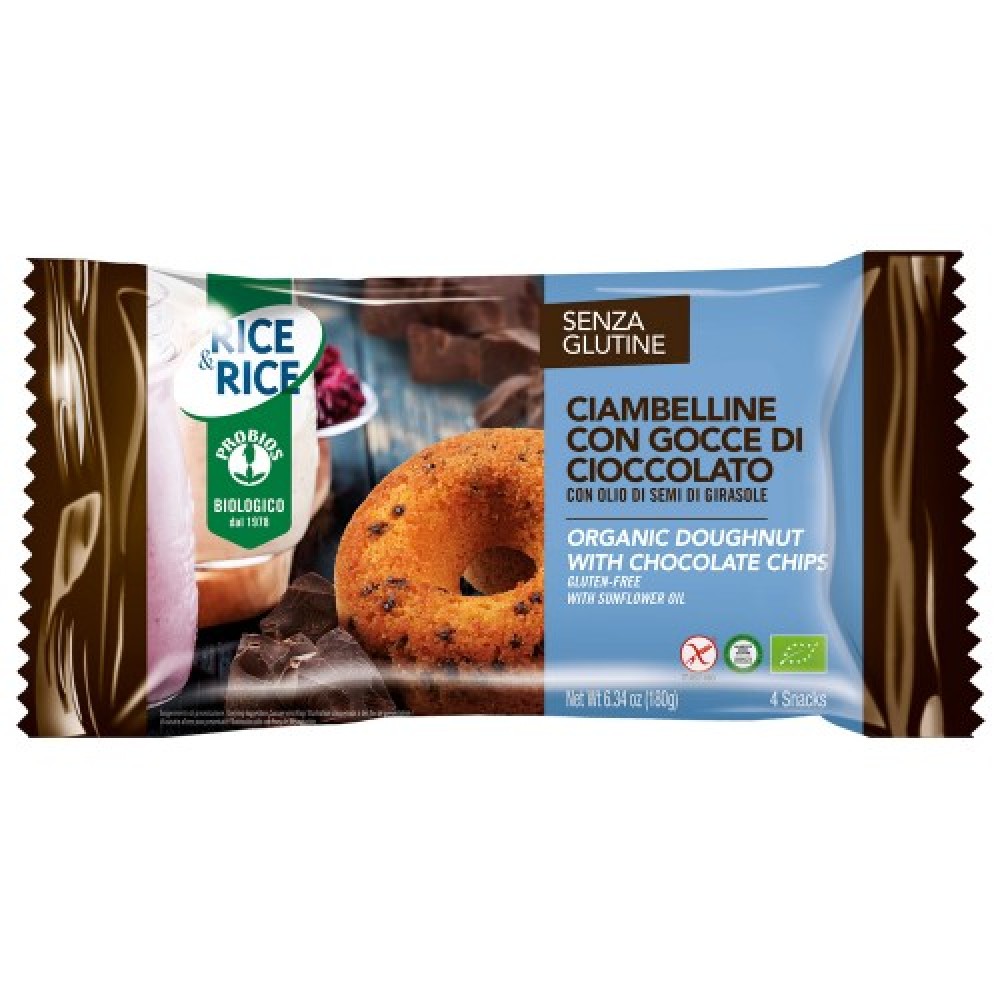 Βιολογικά ντόνατς με σταγόνες σοκολάτας χωρίς γλουτένη PROBIOS σε συσκευασία 4 τεμαχίων 180gr