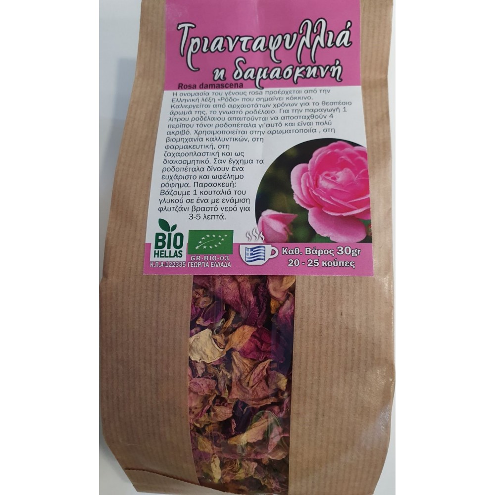 Βιολογικά ροδοπέταλα ποικιλίας "Δαμασκηνή" Rosa Damascena "Θετική Δόνηση" 30gr