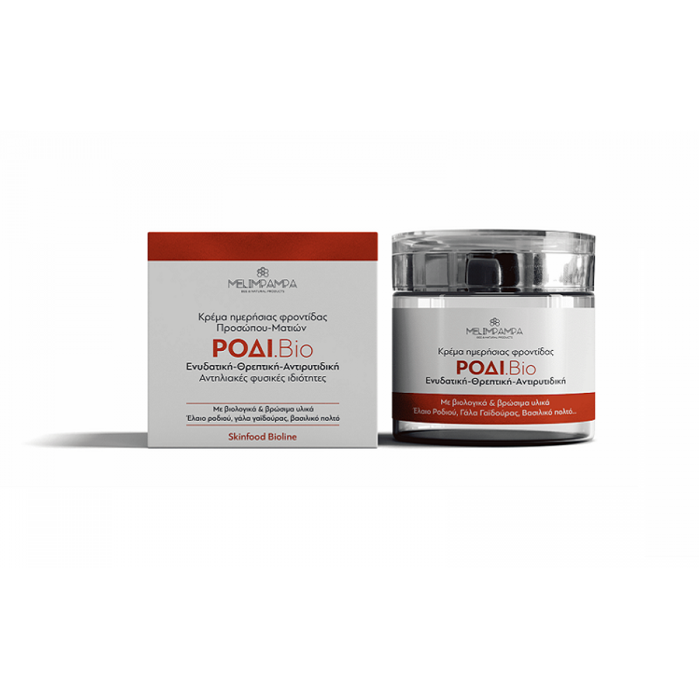 Βιολογική ενυδατική θρεπτική αντιρυτιδική κρέμα ημέρας προσώπου & ματιών ΡΟΔΙ 50ml MELIMPAMPA