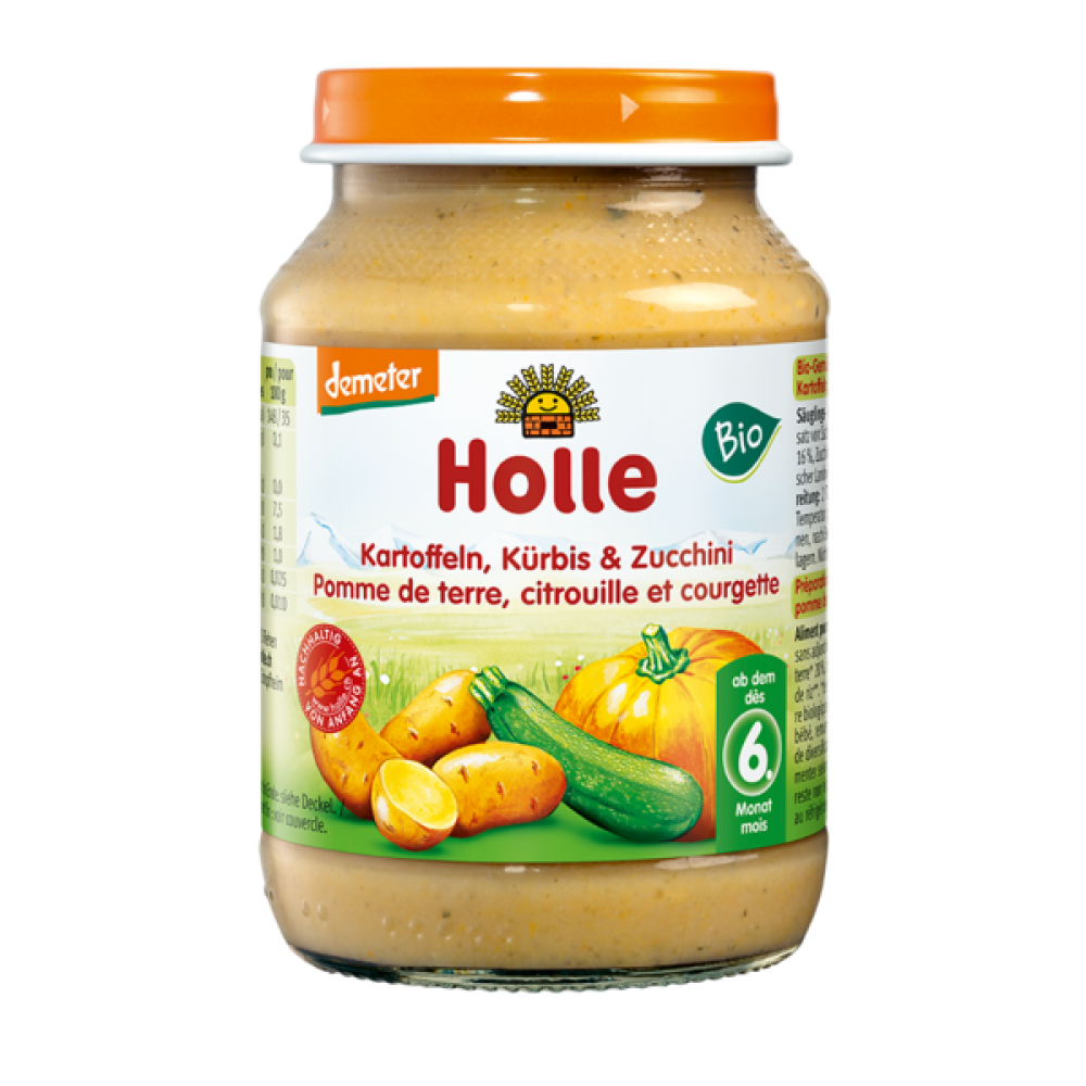 Βιολογικό παιδικό γεύμα κολοκύθα, κολοκυθάκι & πατάτα Demeter (από 6 μηνών) "Holle" 190gr