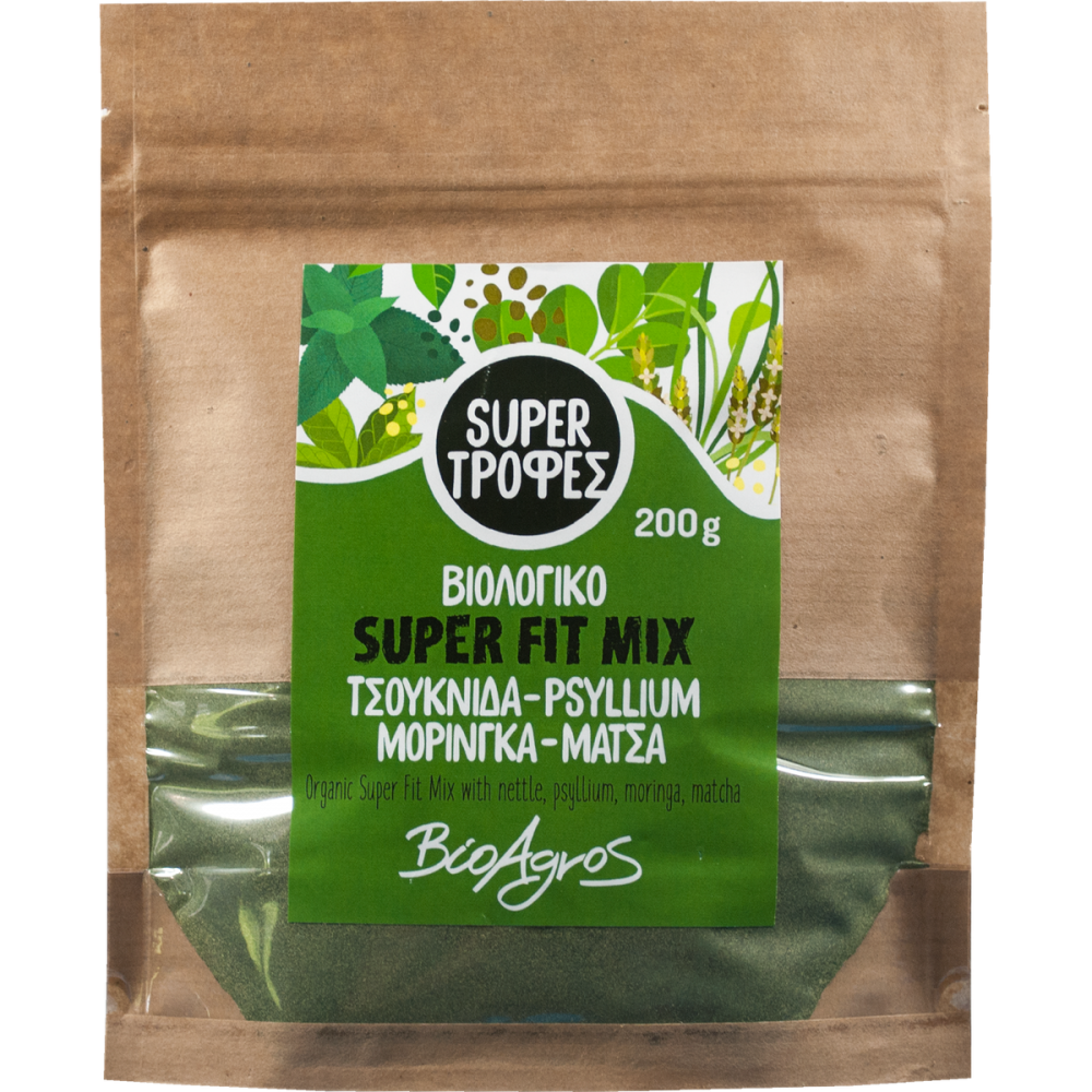 Βιολογικό super FIT mix (τσουκνίδα, ψύλλιουμ, μορίνγκα, μάτσα) 200gr
