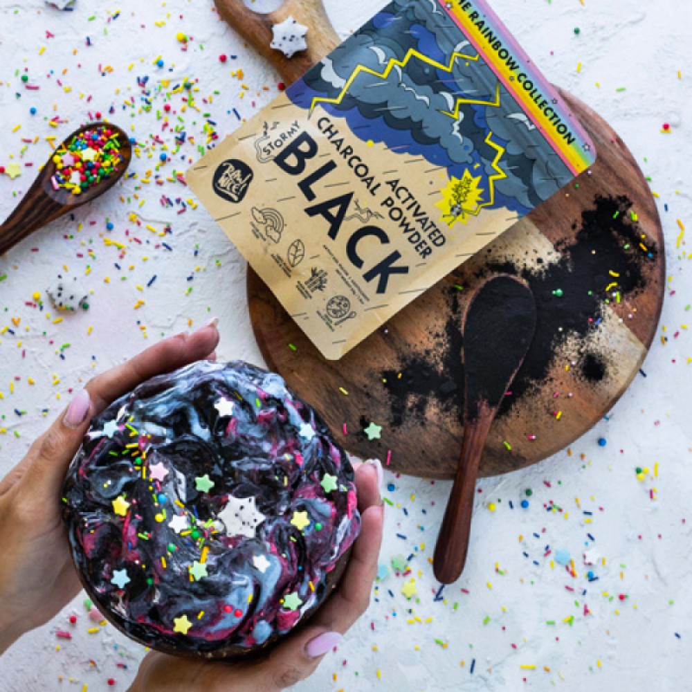 Βιολογικός μαύρος ενεργός άνθρακας σκόνη charcoal black powder vegan 50gr "the rainbow collection"