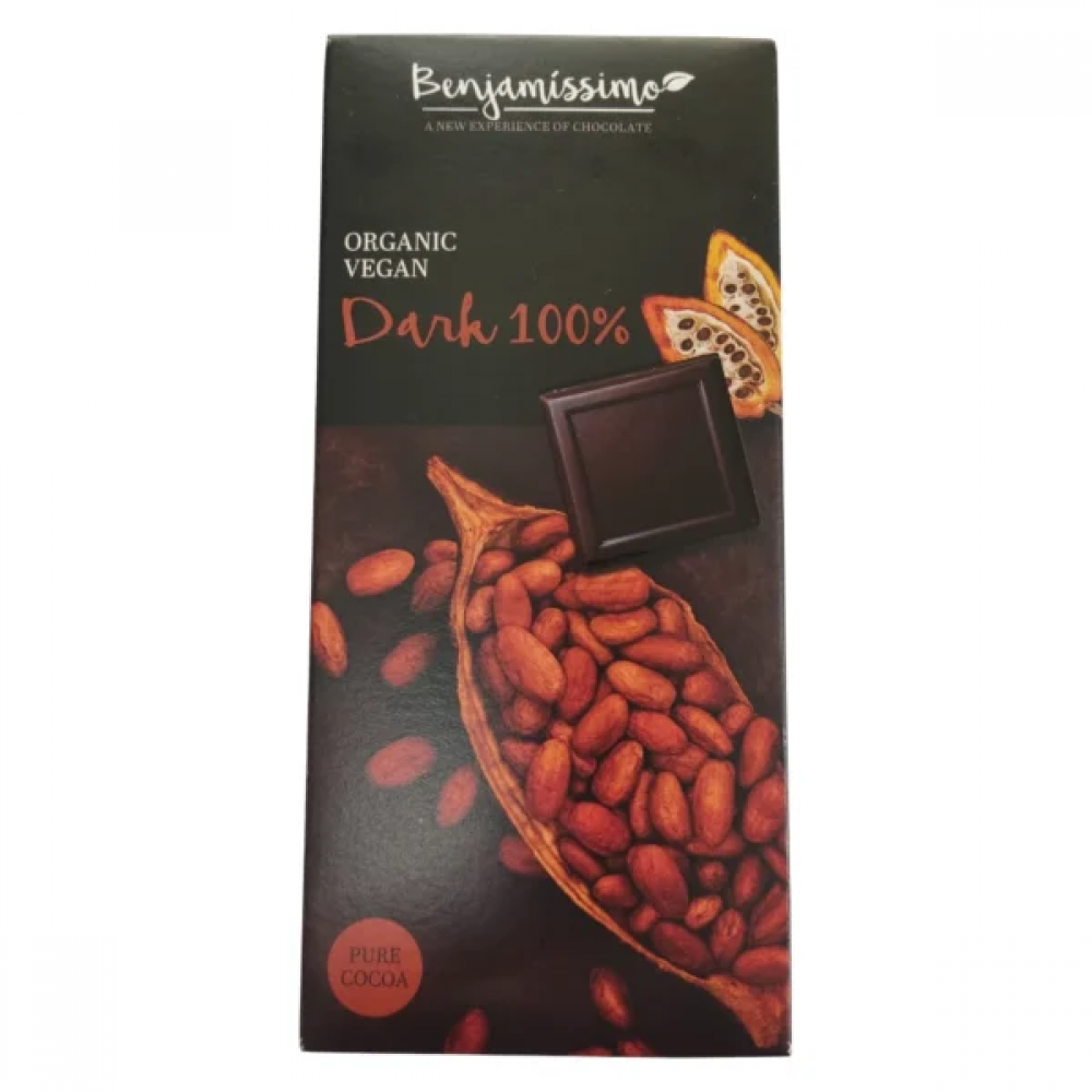 Βιολογική μαύρη σοκολάτα 100% Κακάο χωρίς ζάχαρη και χωρίς Γλουτένη Vegan 70gr Benjamissimo