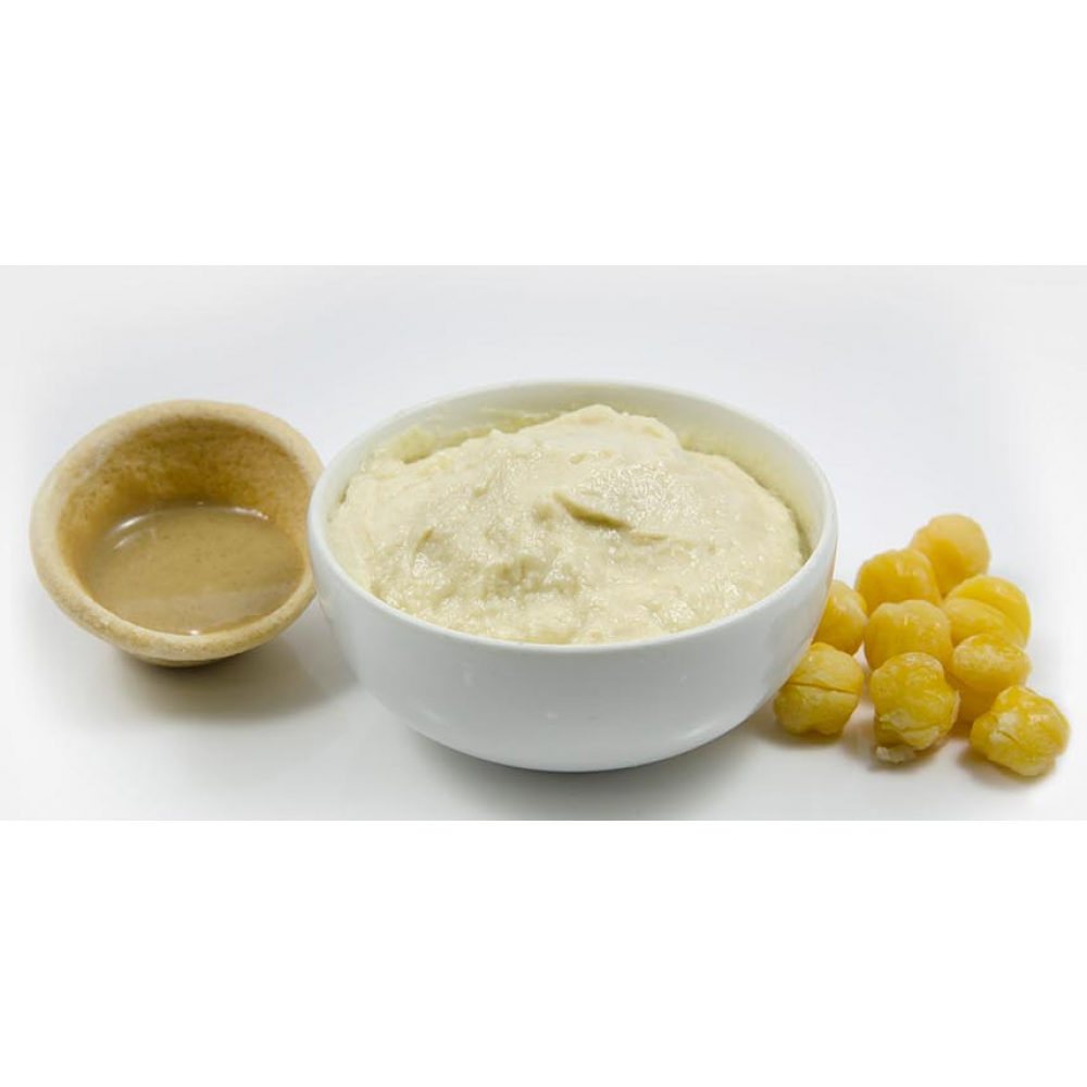 θρεπτικό ταχίνι, ρεβίθια Μακεδονίας, φρέσκο σκόρδο και λεμόνι.