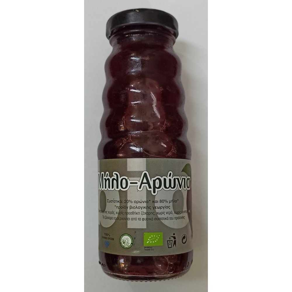 100% χυμός από βιολογική αρώνια και μήλα Ολύμπου !